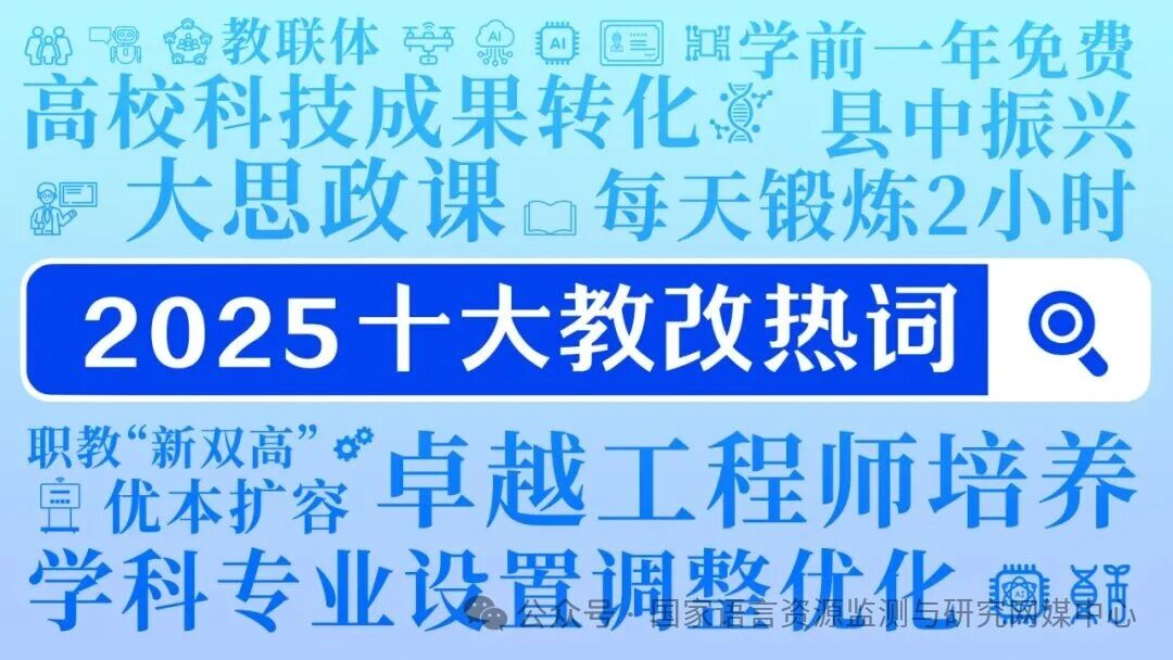 2025年是贯彻全国教育大会精神、落实教育强国建设规划纲要的关键之年。教育部贯彻落实党中央、国务院决策部署,制定实施教育强国建设三年行动计划,启动三年行动计划综合改革试点,以小切口带动全局性改革,加快推动教育强国建设从谋划转向实干。一年来,两批次六大类41项试点落地见效,呈现出以试点探索、精准突破带动改革纵深推进、形成协同发力的良好态势,教育强国建设迈出坚实步伐。跟小编一起了解2025十大教改热词——